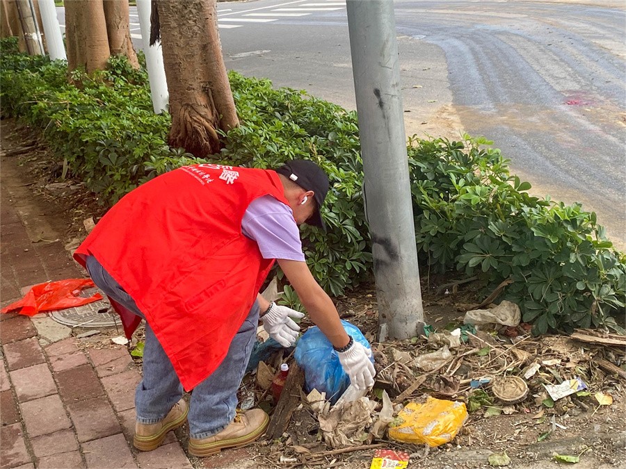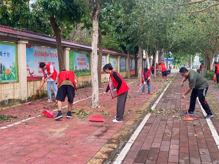 10月23日,我校迅速组织教师与青年志愿者在新世纪大道上海路至湘潭路沿途街道及学校周围等重要点位分组开展卫生清理行动,重点整治清理小型断落树枝、树叶、垃圾、破损工地围挡和破损公益广告,扶起被风吹倒车辆等,志愿者们众志成城、全力以“复”清洁环境、美化家园,确保台风后的道路正常通行,助力北海市恢复正常生活秩序。我校每位参加活动的志愿者不怕脏、不怕累,认真捡拾清扫垃圾,齐心协力清理台风过后留下的痕迹,通过大家的辛苦劳动,我校负责点位区域迅速恢复整洁干净面貌。