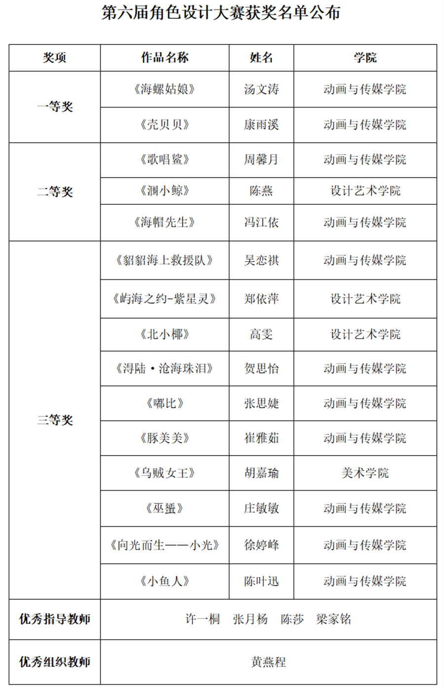 动画与传媒学院第六届“鲸鱼杯”角色创意设计大赛圆满落幕
