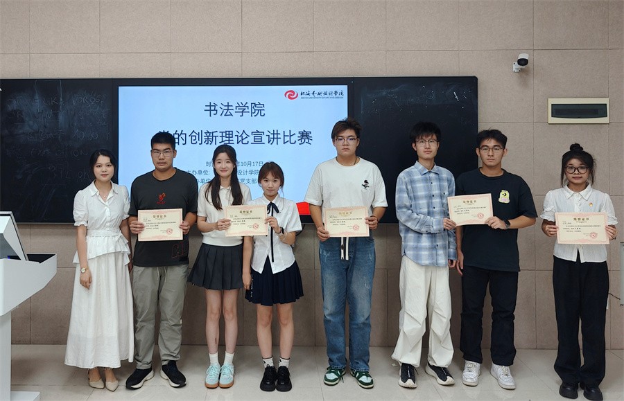 为扎实做好宣讲工作,持续推动党的创新理论入脑入心,10月17日,书法学院在西校区图书馆智慧教室506开展党的创新理论宣讲比赛。书法学院党支部副书记左云飞、副院长李家琪、韦志忍、黄荣婷出席活动并担任评委。