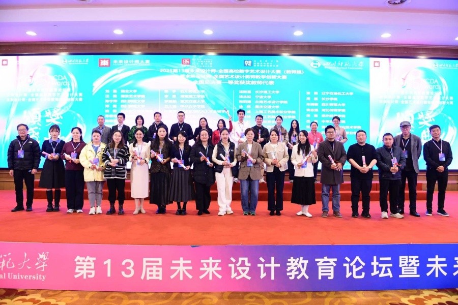 11月23日,第13届未来设计教育论坛暨未来设计师大赛颁奖典礼在成都成功举办。我校副校长陶立阳出席大赛开幕式并担任颁奖嘉宾,设计艺术学院院长李林平率队参会。影视动画学院教师陶莉娜带领《动画表演》教学团队凭借卓越的教学创新与课程设计,在全国艺术设计教师教学创新大赛总决赛中表现出色,斩获一等奖。