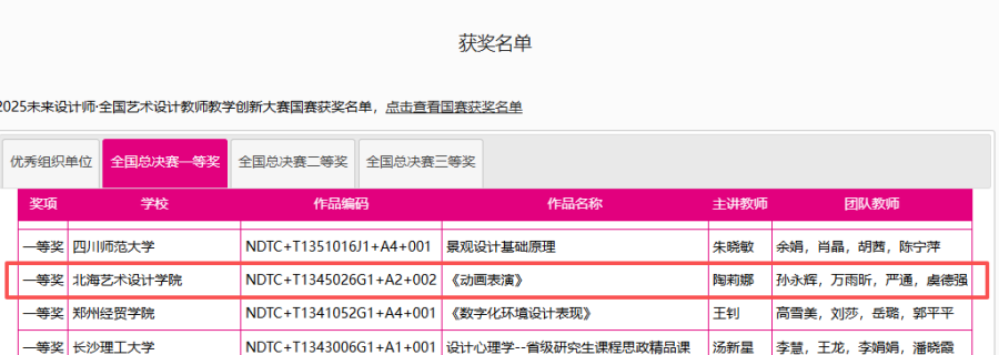 据悉,本届赛事共吸引全国416所高校、5186名教师参与,参赛队伍达1066支。以省/自治区/直辖市为单位设立29个赛区。比赛采用三级赛制,经严格评审,最终132支队伍晋级全国总决赛。在专家评审团的严格评审和现场答辩环节中,参赛教师全面展示了各自课程最新的教学理念与创新成果。影视动画学院此次参赛教学团队成员团结协作、攻坚克难,历经多轮选拔,最终凭借其突出的创新性、扎实的实践成果与清晰的教学逻辑,赢得了评委的一致认可。