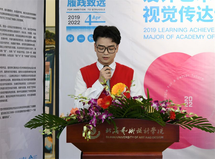 随后,学生代表谢利中发言,他表示设计是热情与作品的碰撞,是一杯水从冰冷到沸腾的神奇过程,而关于设计,前期的调研就像冰水一样理性冷静,作品也会因为有了心血的沁入随之变得温暖起来。纸上得来终觉浅,绝知此事要躬行,创新创造需要热情,正如一杯冰水需要加温。