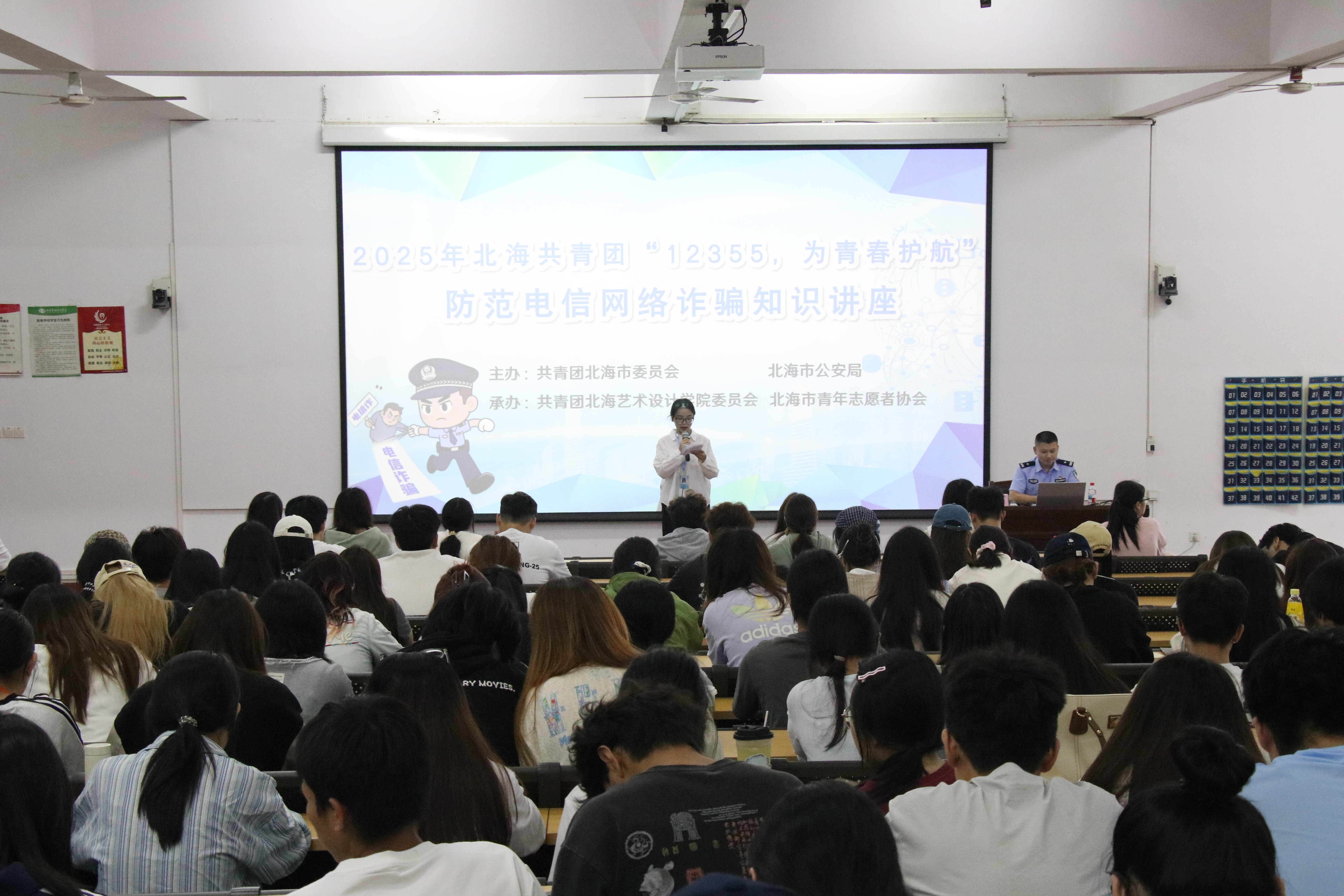 近日,我校于伦理楼107开展“12355,为青春护航,防范电信网络诈骗知识讲座”。本次讲座特别邀请北海市公安局新型网络犯罪侦查支队副支队长王涛担任主讲嘉宾,为同学们普及反诈知识、剖析真实案例,以鲜活警示筑牢安全防线,让电信网络安全意识深植于心。