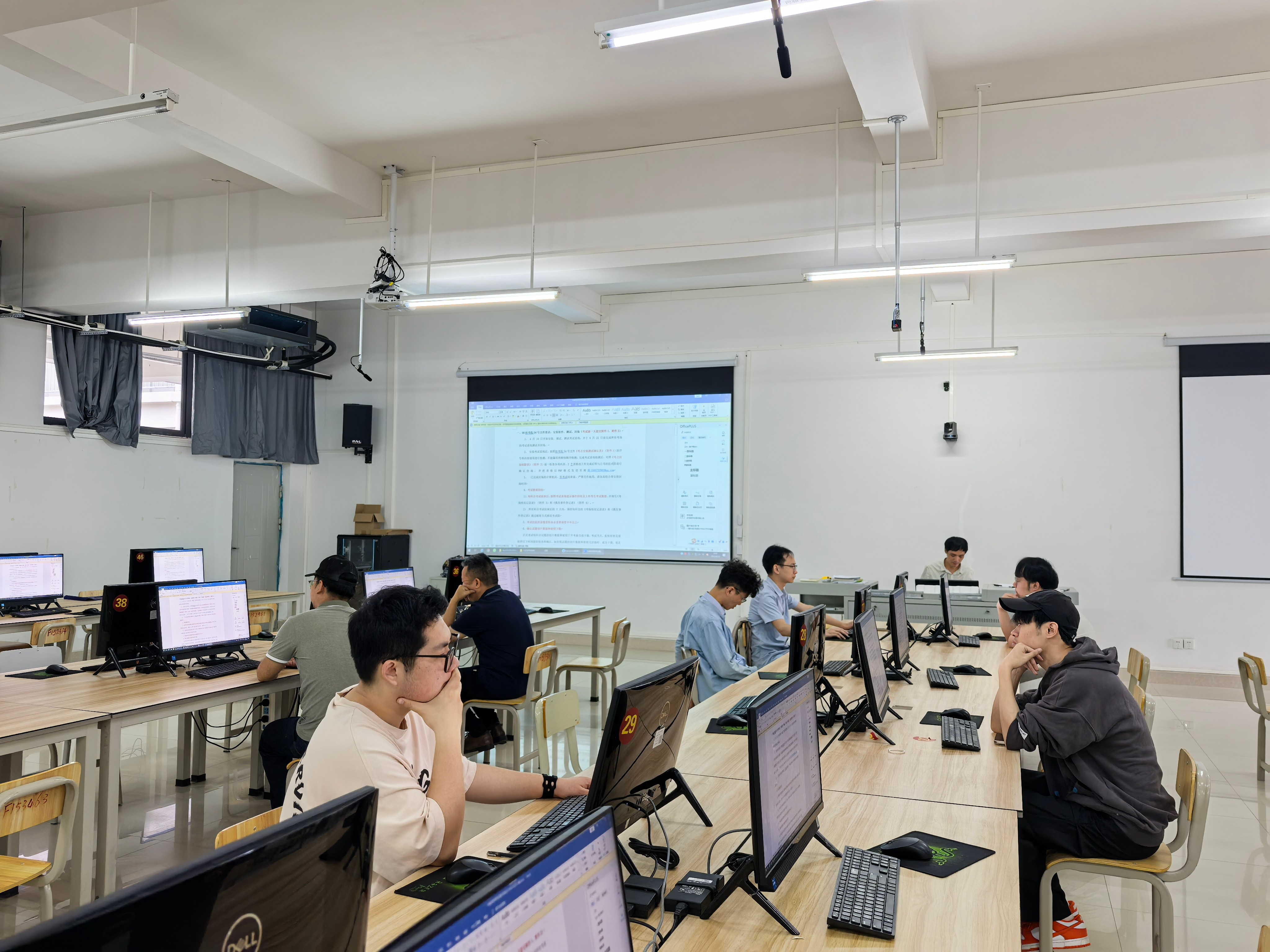 2025 年,广西高校教师资格理论考试迎来全面机考改革,我校凭借扎实的技术实力与丰富的考务经验,成功承担北海市唯一考点重任。作为此次考试的技术实施部门,设备与信息处迎难而上、周密部署,圆满完成 6 间考场、300 台考试终端的部署调试工作,为考试平稳有序开展筑牢坚实的技术堡垒。
