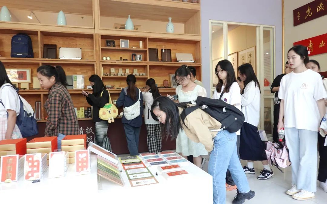 紧接着在工作人员的带领下,师生们来到了崇德堂文创馆。崇德堂文创理念定位于“美德共济”,即希望从中国文字出发,通过现代创意设计,将吉祥美善的国风审美与春风化雨的道德文化相融合,让中国制造的文化良品表达更多人的美好心声。