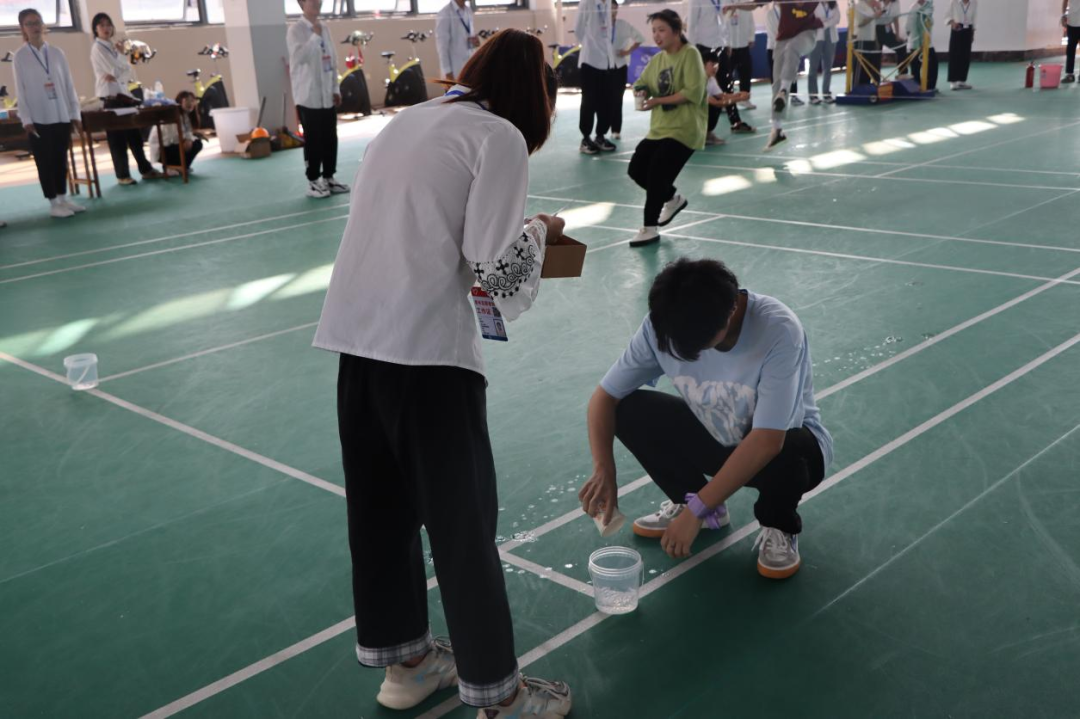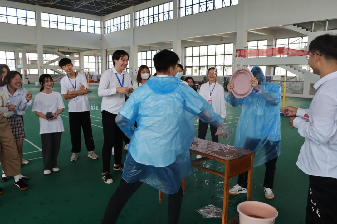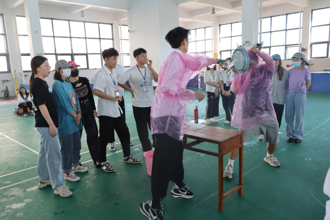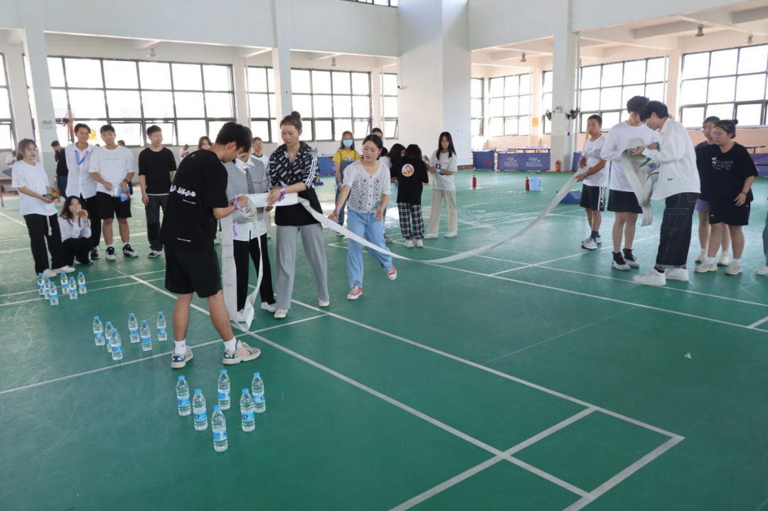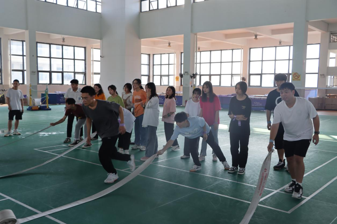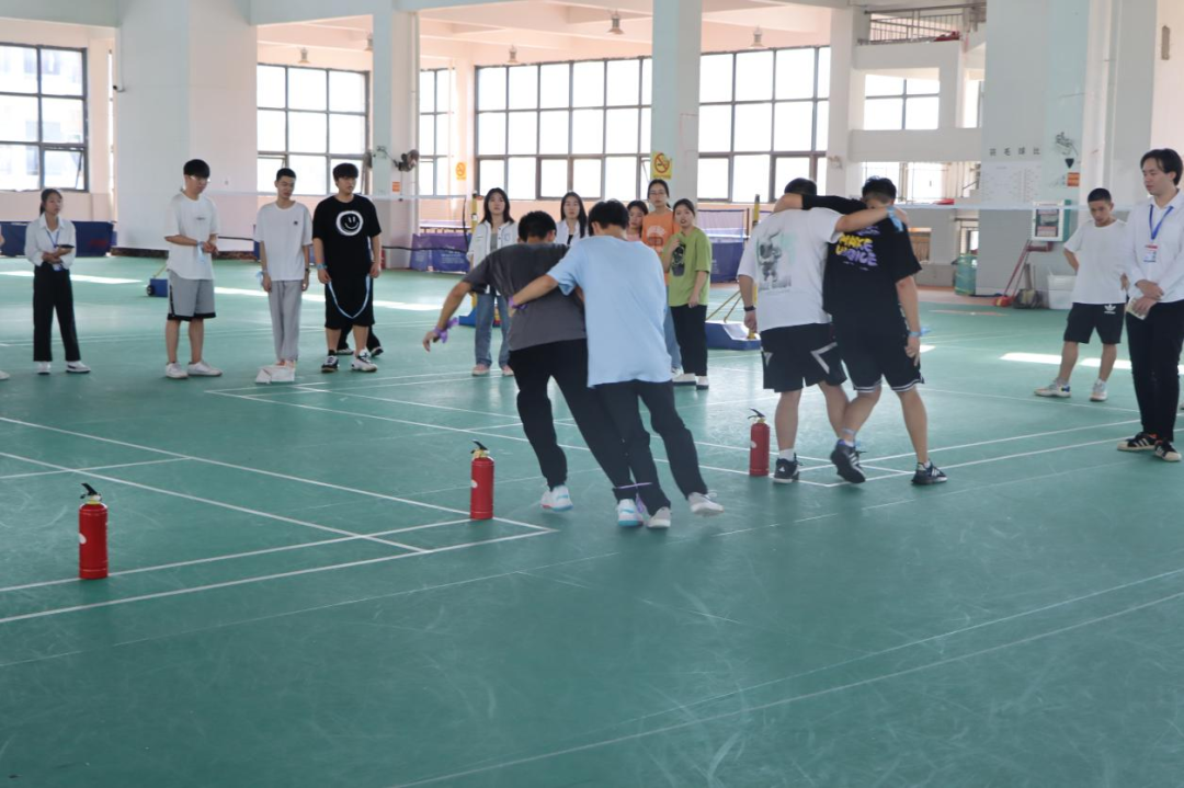 每队的两人将腿绑在一起,一人拿灭火器,一人拿消防水带,两人配合走到终点回答问题,答对后回到起点交给队友交接。最后游戏结束,由工作人员统计各队得分,再交给主持人进行评比,在此感谢各位工作人员和同学们的支持与配合,保证了此次活动的顺利举行。