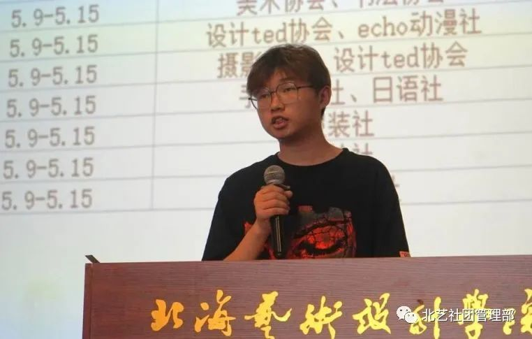 社团代表依次上台发言,分别向老师和同学们讲述了文化节期间各社团举行的具体活动计划,各个社团的负责人各思其想,积极配合,策划出了很多新奇,有趣的文化节活动,极大地调动了同学们参与的积极性。