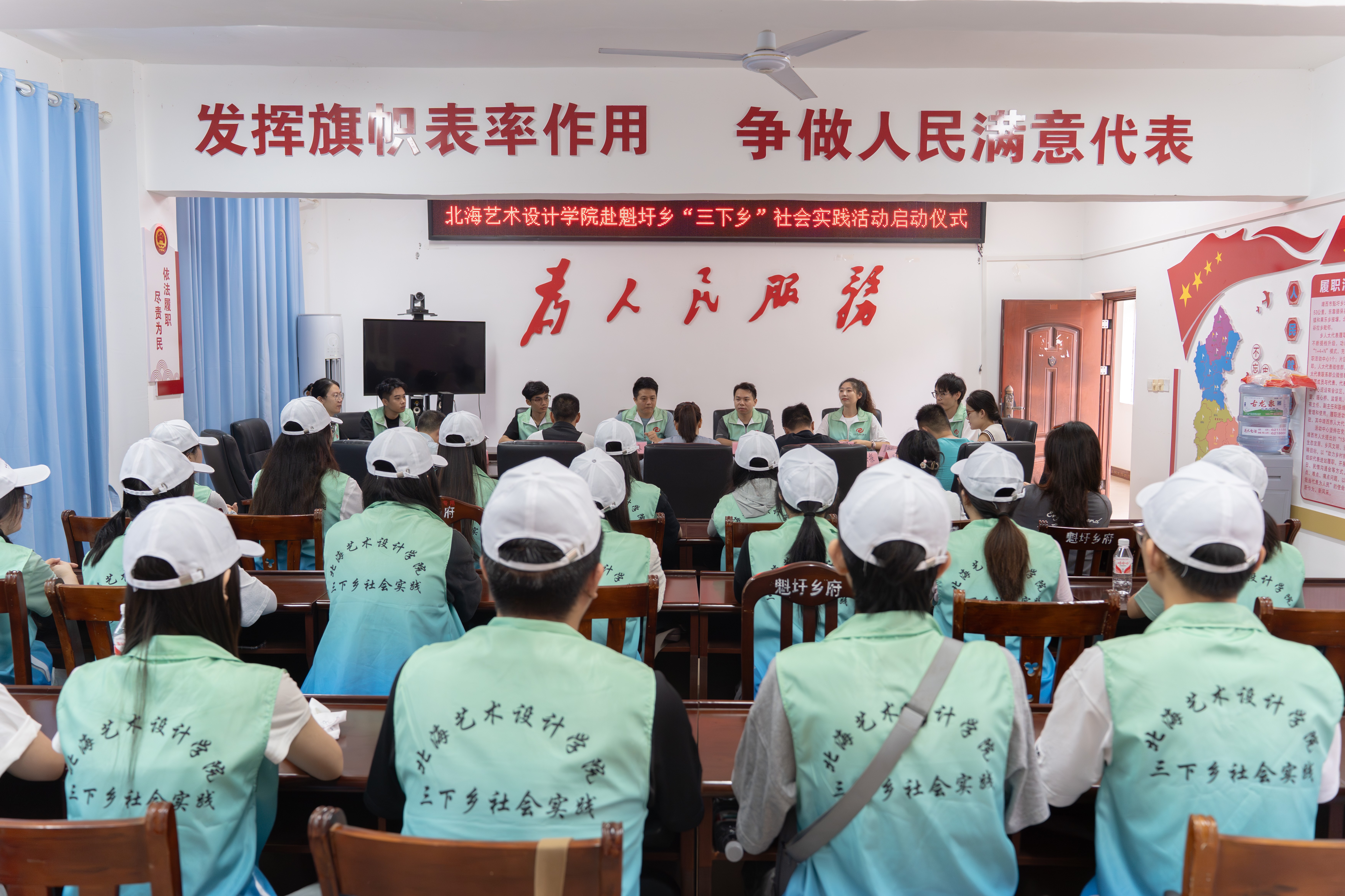 出席本次启动仪式的领导、老师有魁圩乡人大主席沈丽盘,常务副乡长李成才,魁圩乡党委委员、宣传统战委员农贵显,魁圩乡九年一贯制小学副校长黄福辉、黄岳振以及我校团委书记唐良春,我校优秀毕业生黄秀敏,校团委、各二级学院分团委领导老师以及参加此次“三下乡”活动的志愿者30余人。